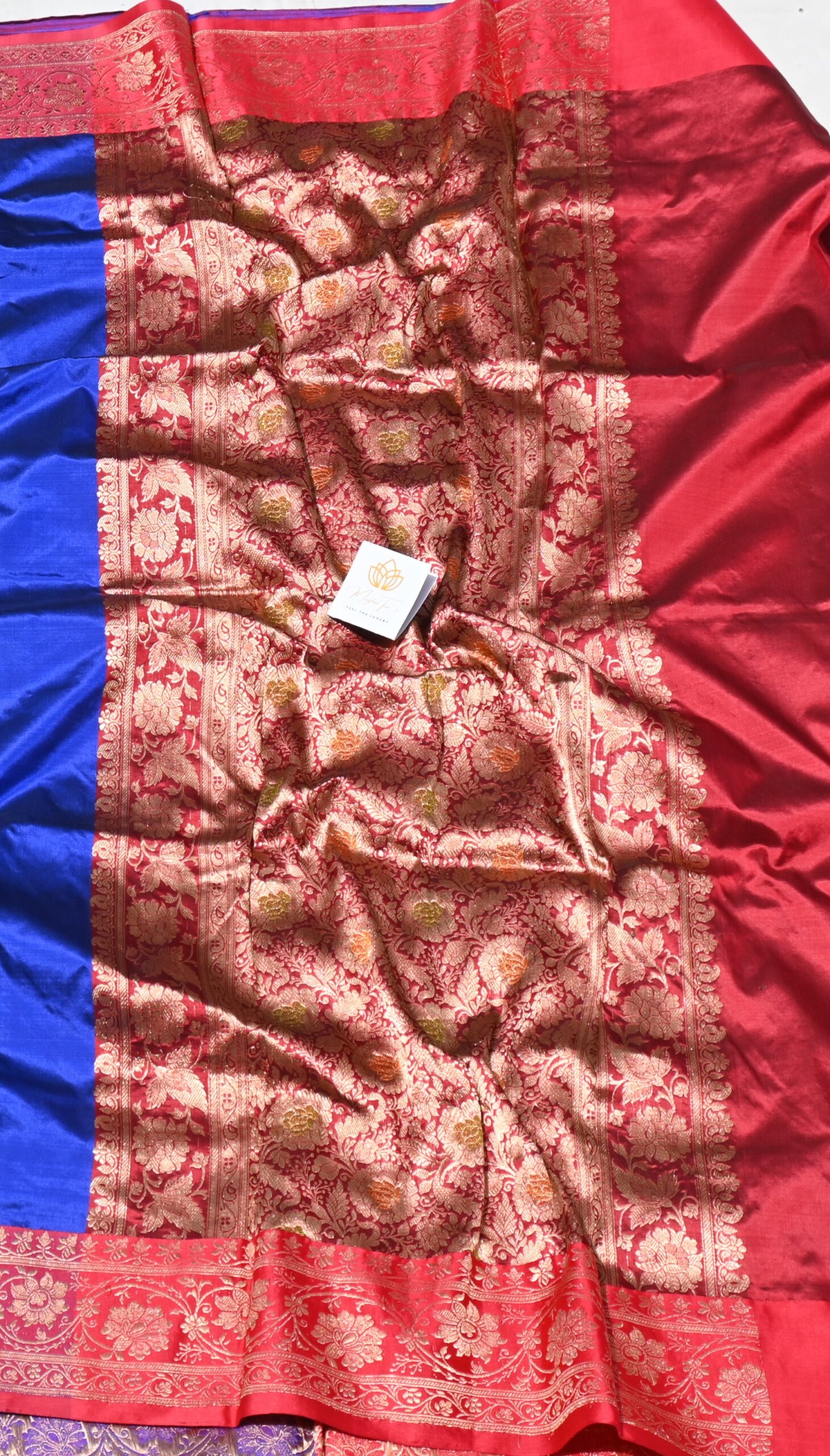 DESCRIPTION Pure Silk Katan Dark Blue & Mahroon Saree By Handloom