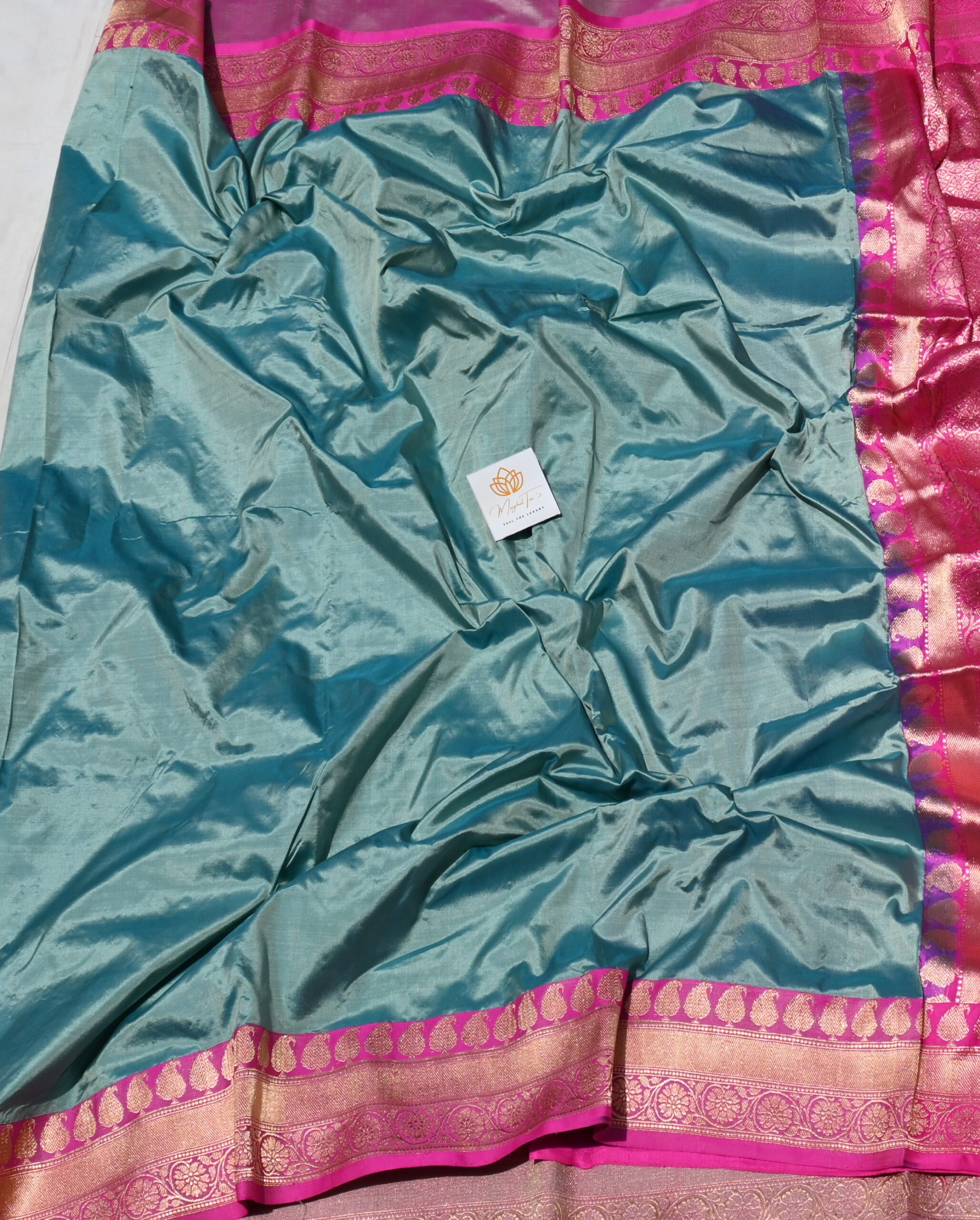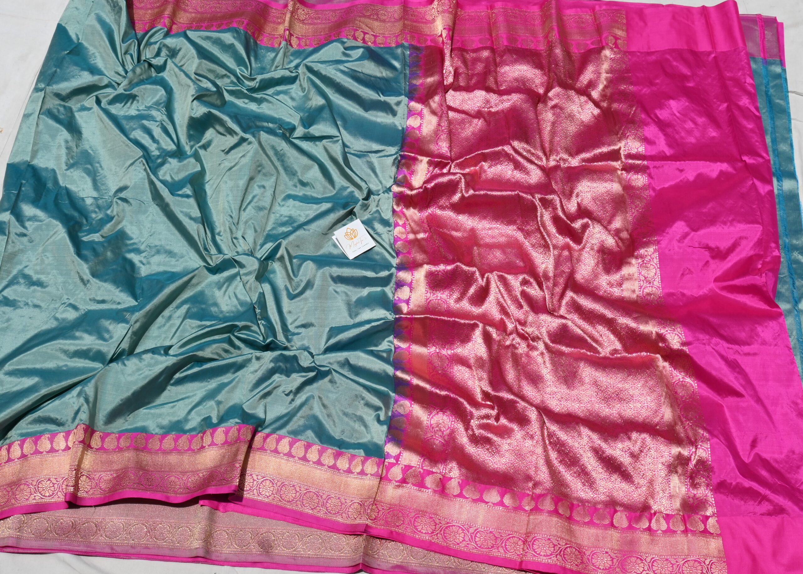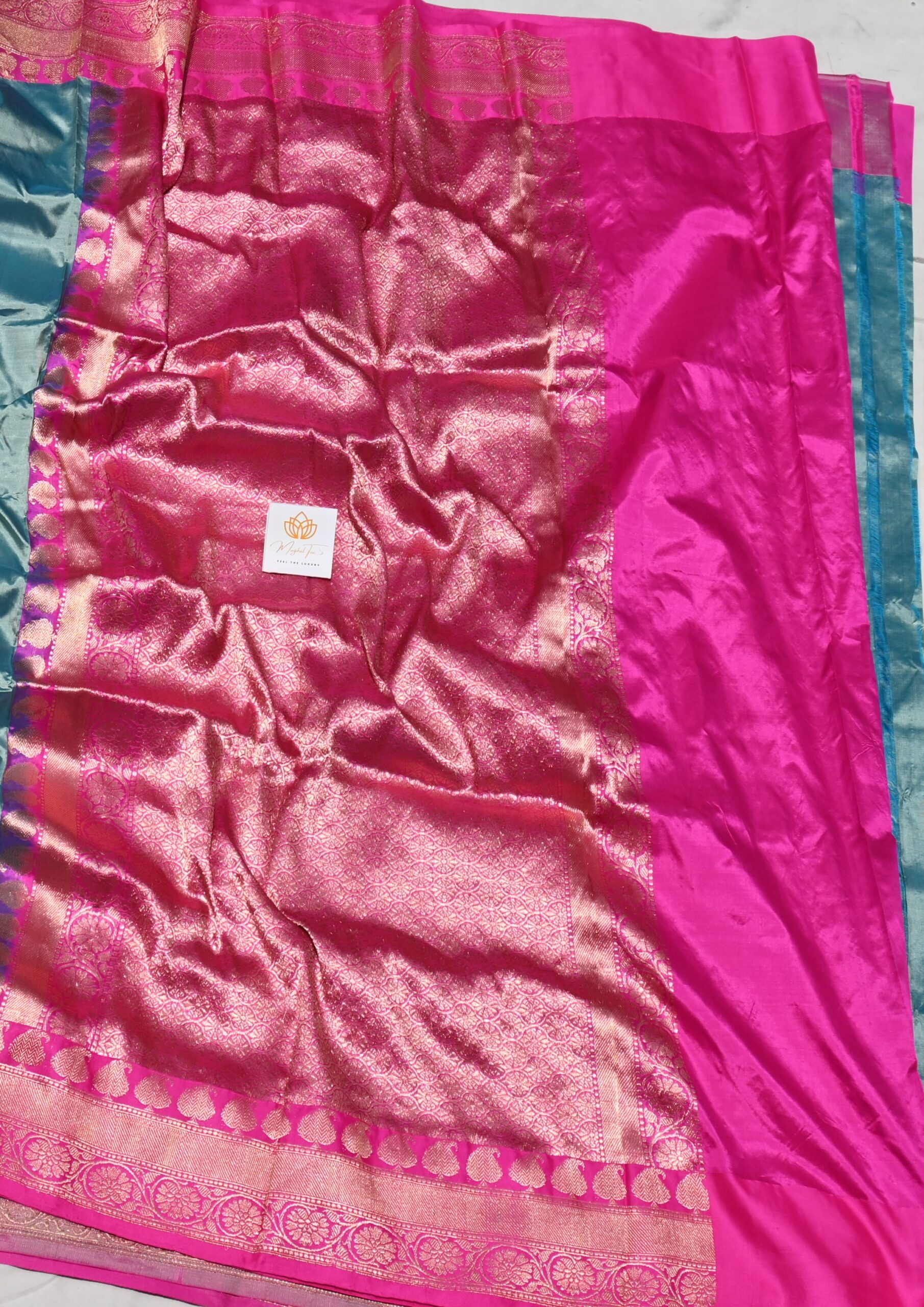 DESCRIPTION Pure Silk Katan Saree Light Blue & Pink Combination